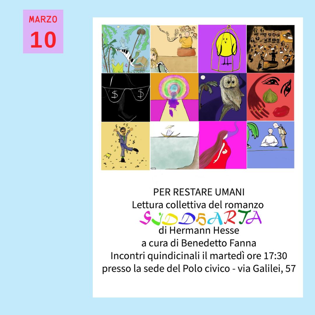 Lettura collettiva di romanzi a cura di Benedetto Fanna Incontri quindicinali, ogni martedì alle ore 17:30 Polo Civico Esquilino Via Galilei, 57 Uno spazio aperto di ascolto, riflessione e condivisione. |