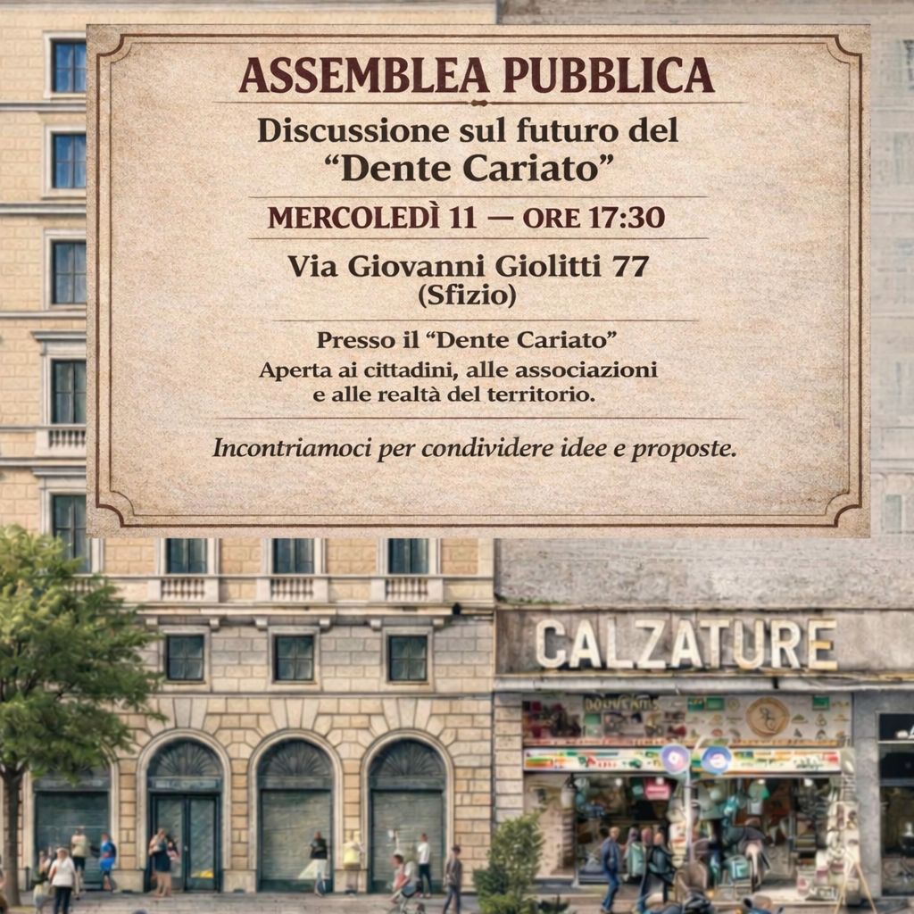 L’assemblea è aperta a cittadine e cittadini, associazioni e realtà del territorio.Un momento per condividere idee, proposte e visioni per questo spazio. 📍 Via Giovanni Giolitti 77 (Sfizio)🗓 Mercoledì 11🕠 Ore 17:30 Incontriamoci per costruire insieme il futuro di questo luogo.