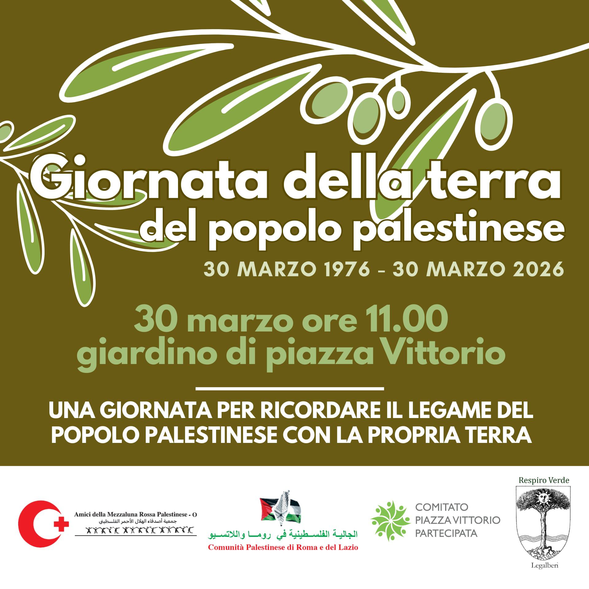 Un’iniziativa della Comunità Palestinese di Roma e Lazio e degli Amici della Mezzaluna Rossa Palestinese con il supporto di CPVP e Respiro Verde – Legalberi per celebrare la Giornata della Terra del popolo palestinese.