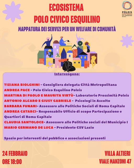 Un vero e proprio ๐๐๐จ๐ฌ๐ข๐ฌ๐ญ๐๐ฆ๐ del Polo Civico Esquilino: sportelli di ascolto, orientamento sociale, supporto psicologico, attivitร culturali, percorsi di inclusione. Un patrimonio diffuso che ogni giorno costruisce welfare di comunitร .