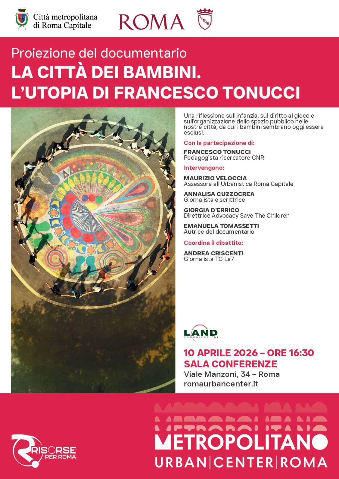 Proiezione del documentario “La città dei bambini. L’utopia di Francesco Tonucci”, una riflessione sul diritto al gioco e sull’organizzazione dello spazio pubblico nelle città.