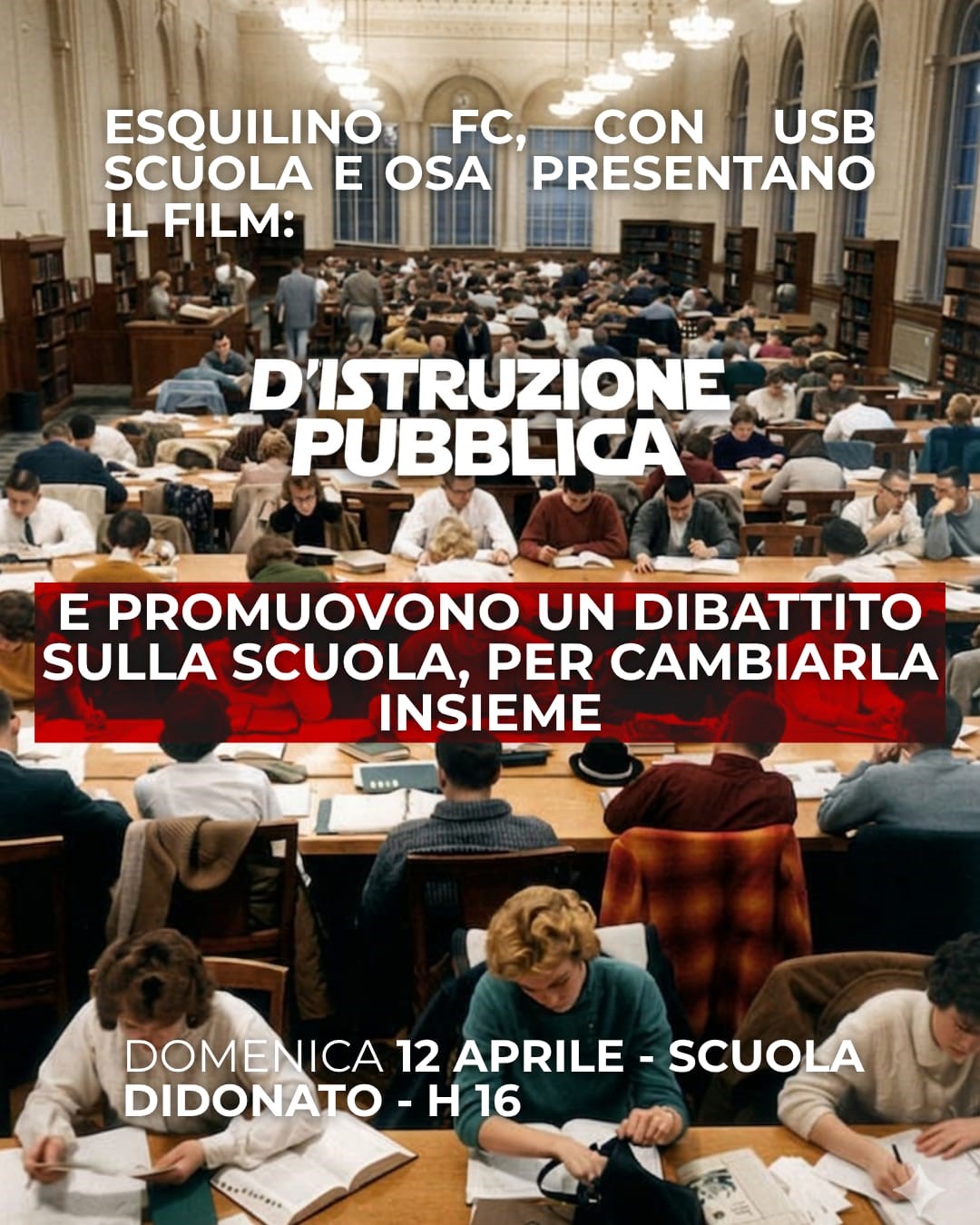 Esquilino FC, USB Scuola e OSA presentano il film “D’Istruzione Pubblica” seguito da un dibattito sul presente e il futuro della scuola per immaginare insieme come cambiarla.